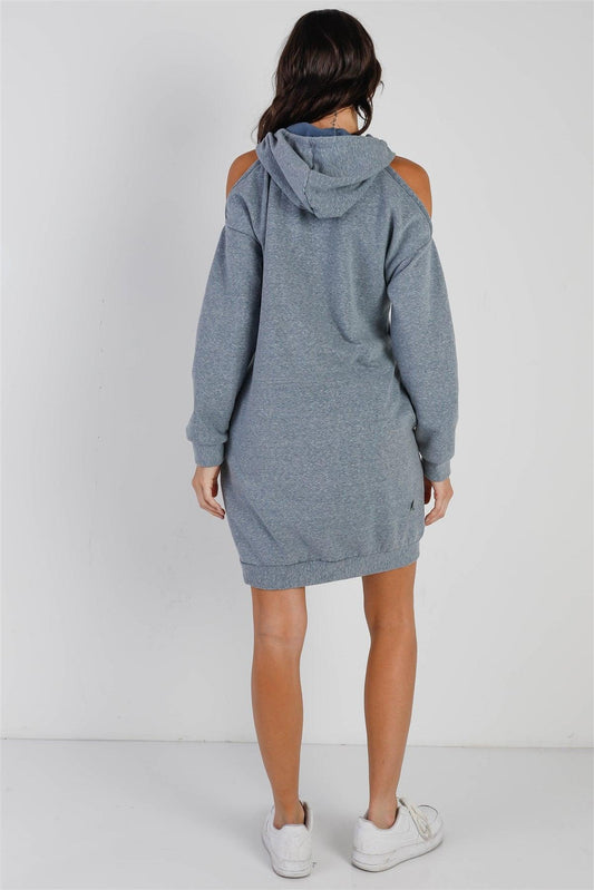 Light Blue Cold Shoulder Hooded Long Sleeve Dress